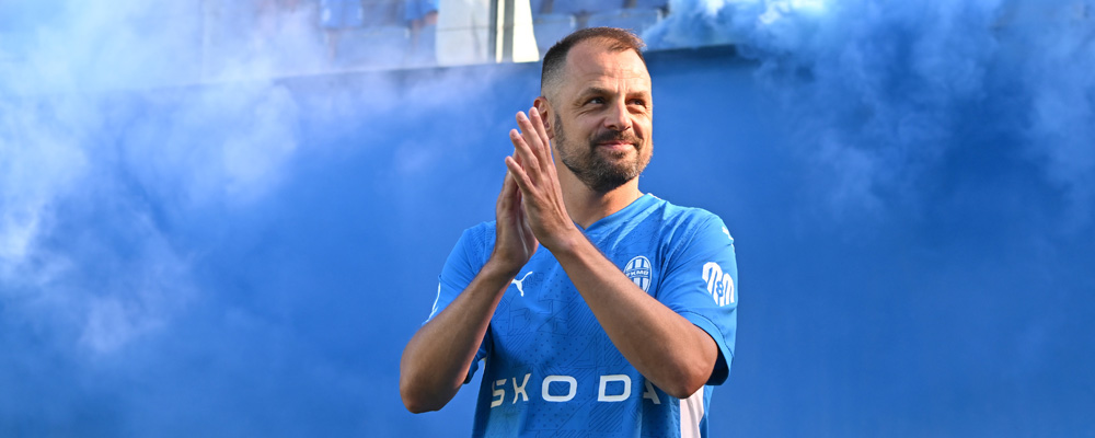 Fotbalista Marek Matějovský na své emotivní rozlučce s fotbalovou kariérou v Mladé Boleslavi, 14.června 2025,