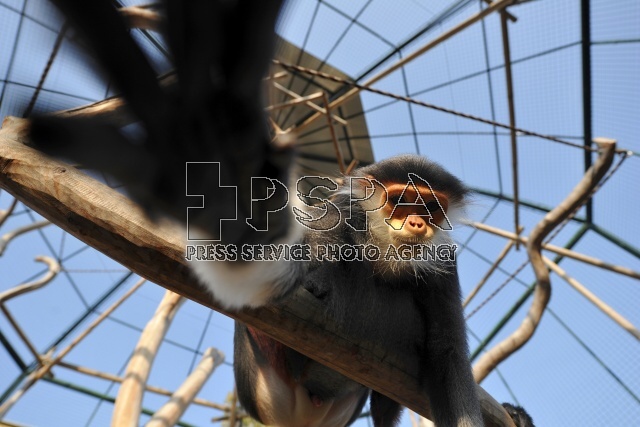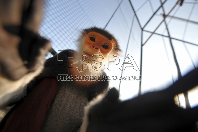 Red-shanked douc, most beautiful primates of the world and currently the rarest animals kept in the Czech Republic and in the Europe. Red-shanked douc is a great rarity in zoos, only 38 individuals were in zoos around the world, with only 5 outside Asia. In the Czech Republic he has been running these primates in the Zoo Chleby. The male and the two females came here from Thailand. The red-shanked douc langur and the black-shanked langur are both endangered. Populations of all 3 species have declined by 50-80% over the last 30 years.